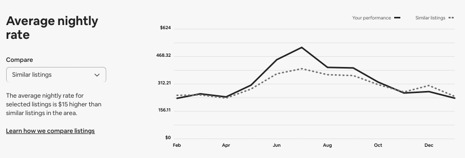 And on top of doubling to tripling occupancy compared to other property managers, we still bring in more dollars per rented night. So if you bring more per rented night, and you have 3 times more rented nights, you bring in more than 3x the revenue. Here’s proof from another AirBnB screen grab for homes in Estes Park: