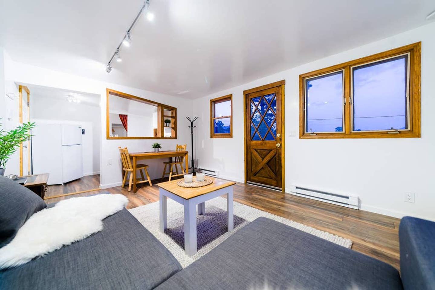 There’s a spacious dining room table and a comfy couch to lounge in while you stream your favorite Netflix series on the speedy WiFi.