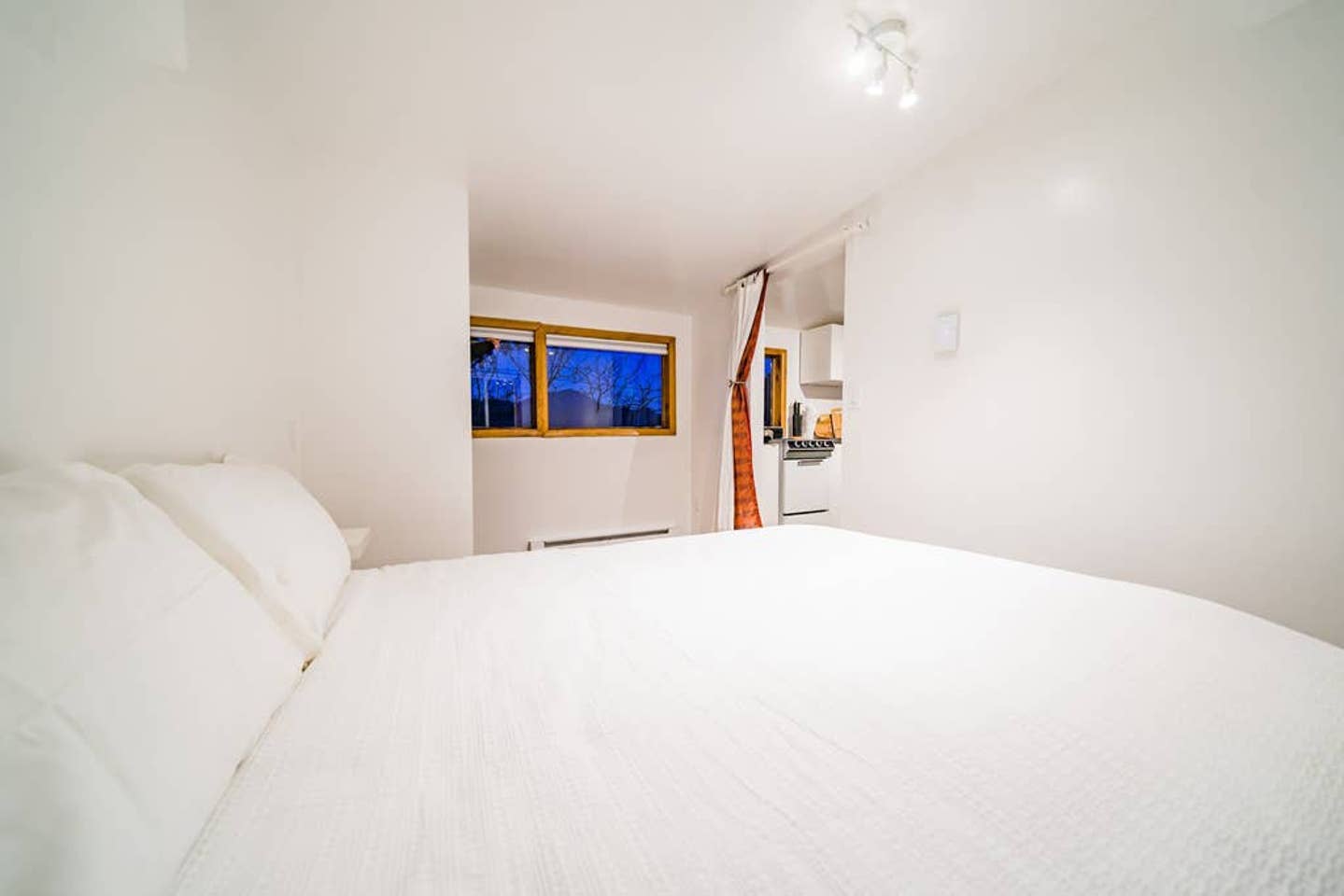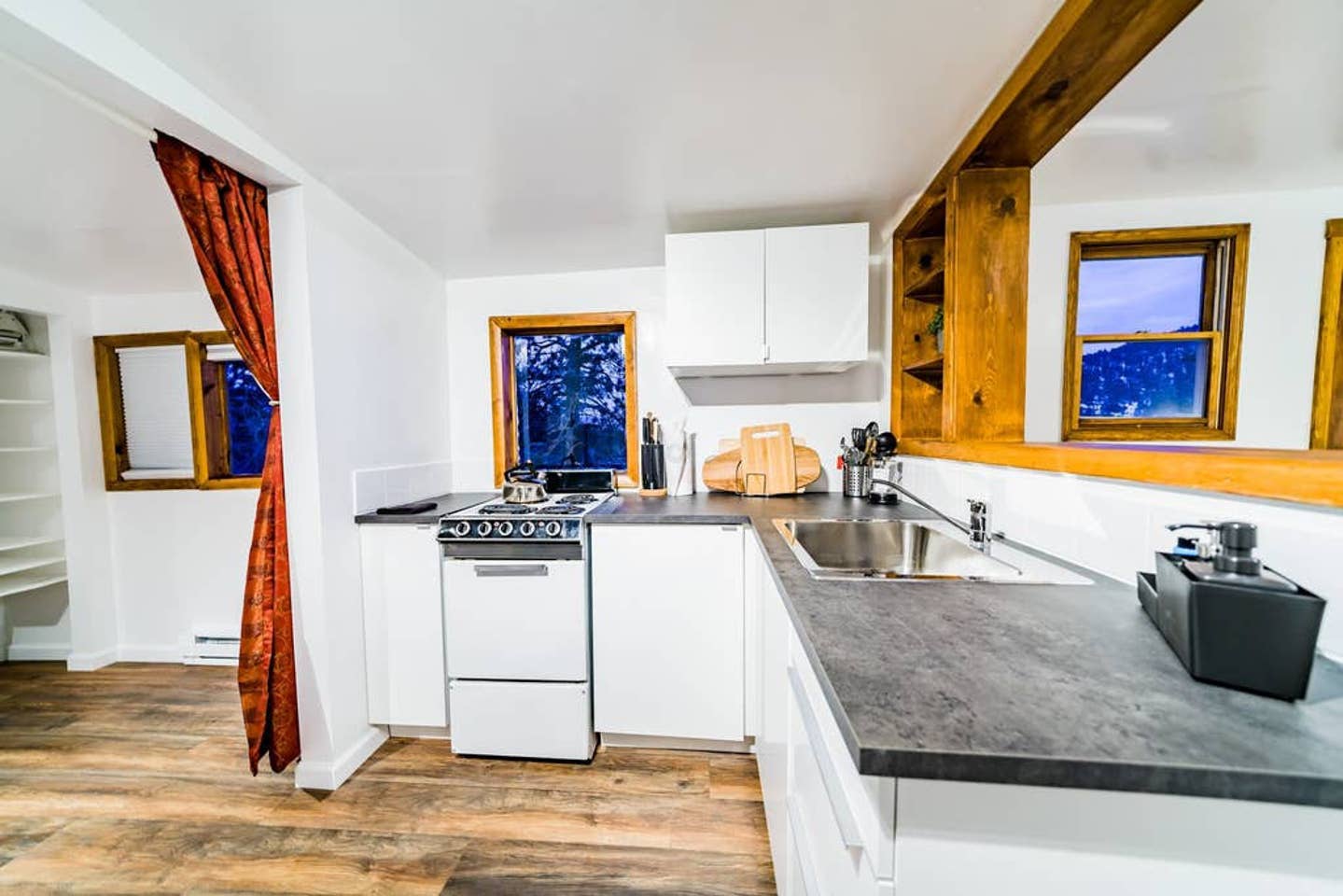 My home offers 1 bedroom with a comfortable memory-foam mattress to ensure a good night sleep after a long day of hiking. Attached is a closet for your gear. There are cool bohemian curtains on bedroom door and on one window, while the eastern windows feature blackout shades to ensure a sound night’s rest. If you like to wake up with the sunrise, you can leave them up and watch the room light up in the mornings.