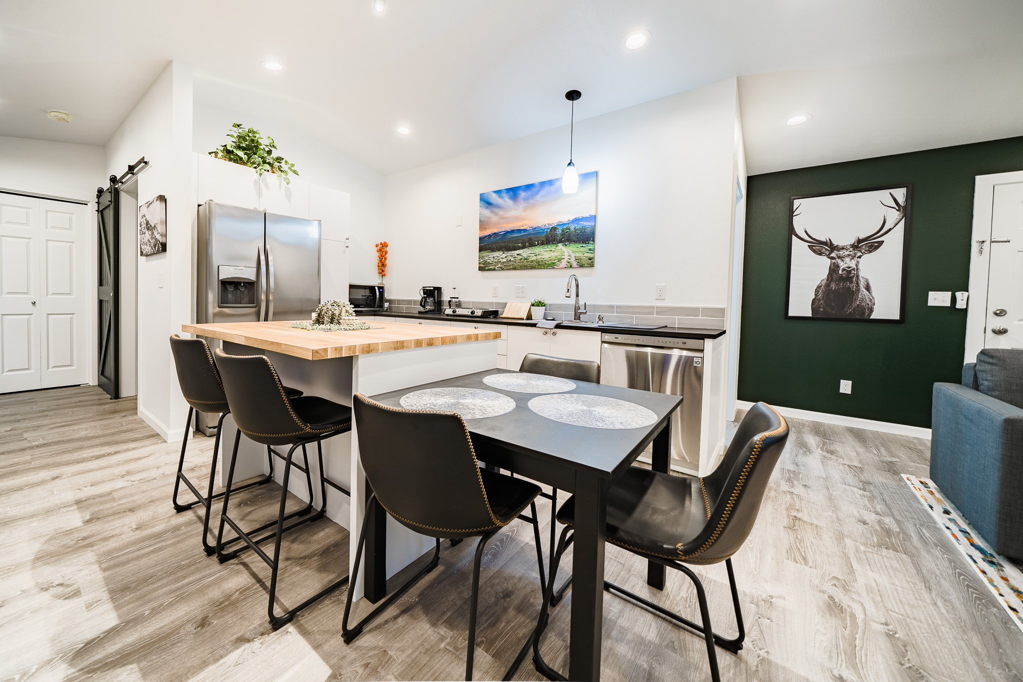 Live the life of leisure in a brand new second floor loft, situated in a fun neighborhood just blocks from downtown. This apartment was specifically built for vacationing guests in mind, and construction finished in mid-2020. Close to the National Park, featuring a 4K smart TV, kitchenette, open floor plan, 1 BR, 1 bath, and views of Lumpy Ridge from the huge picture windows.