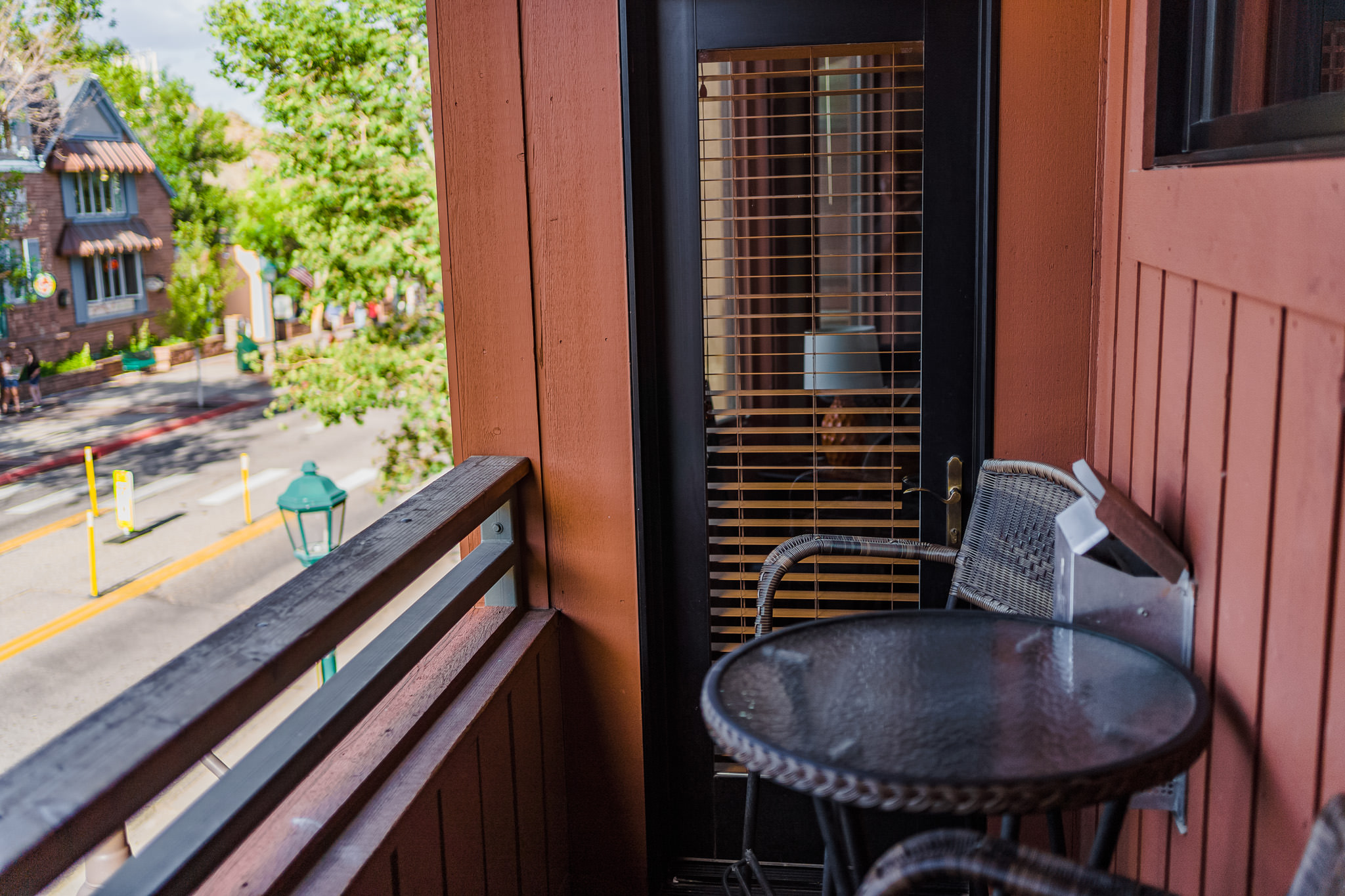 PATIO – Our tiny patio opens up directly above downtown’s Elkhorn Avenue, where you can enjoy the color sights and sounds of Estes Park. It’s a great place for a morning coffee or an afternoon glass of wine or beer. You can also enjoy takeaway dinner here, as there are dozens of restaurants within walking distance.