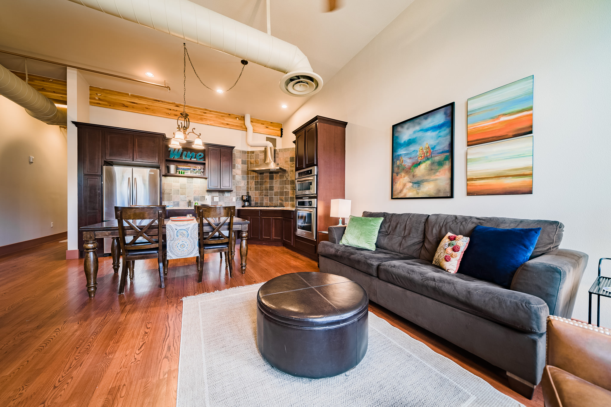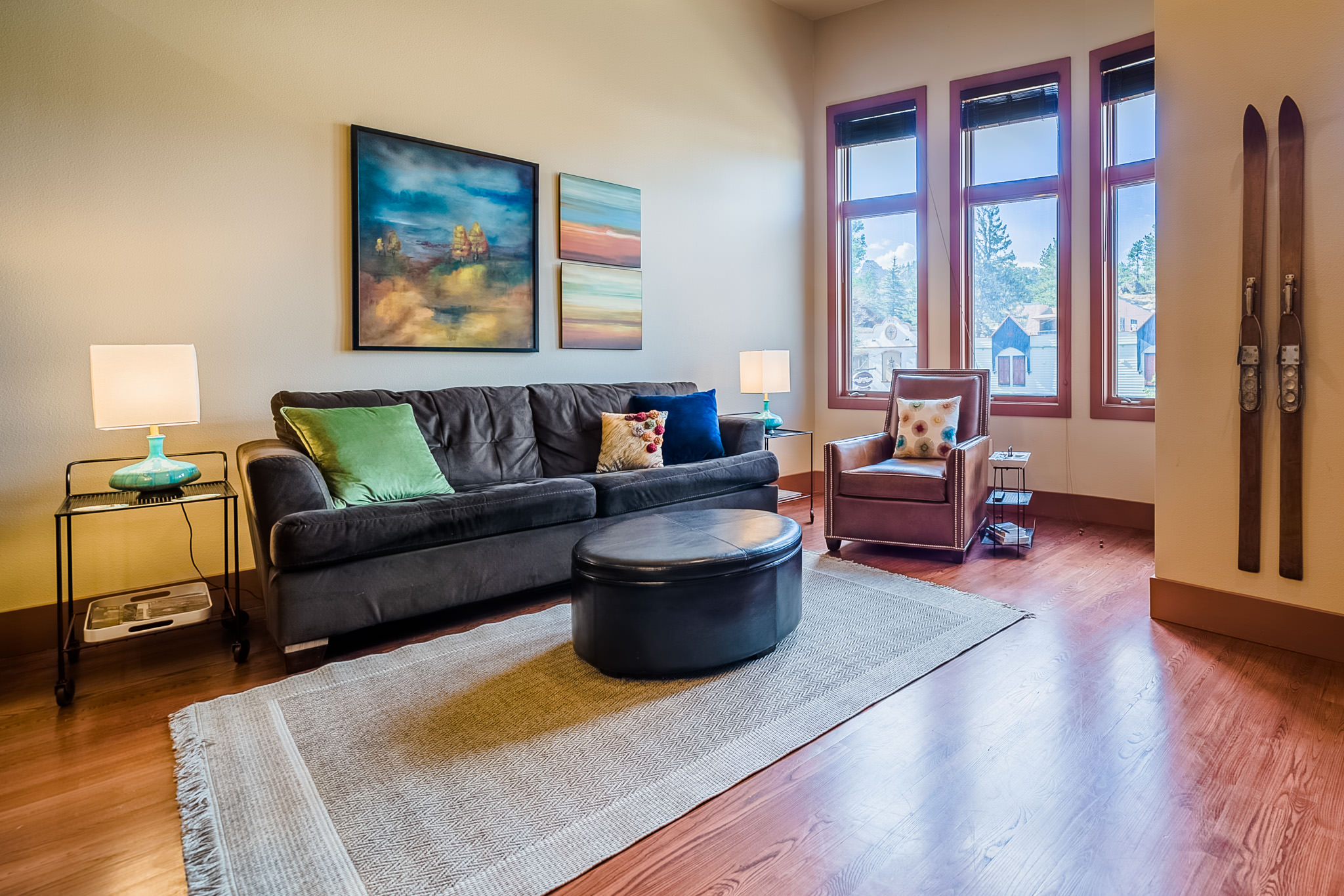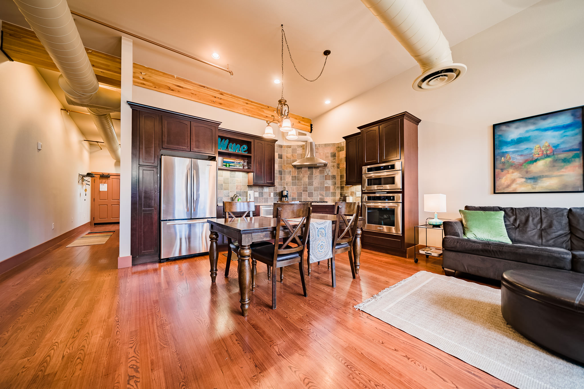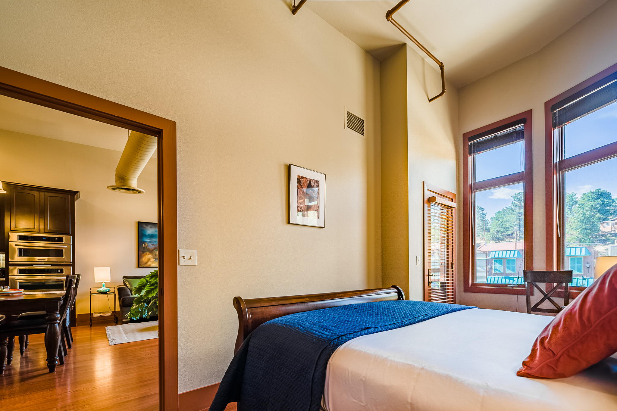The owners of this gorgeous loft say they fell in love with its cozy, high-end vibe, cleanliness, high ceilings, and incredible location that’s perfect for exploring the best of Estes. It’s perfectly appointed with comfy furnishings, a fully stocked kitchen, and countless amenities so you can feel at home during your mountain getaway in Estes Park.