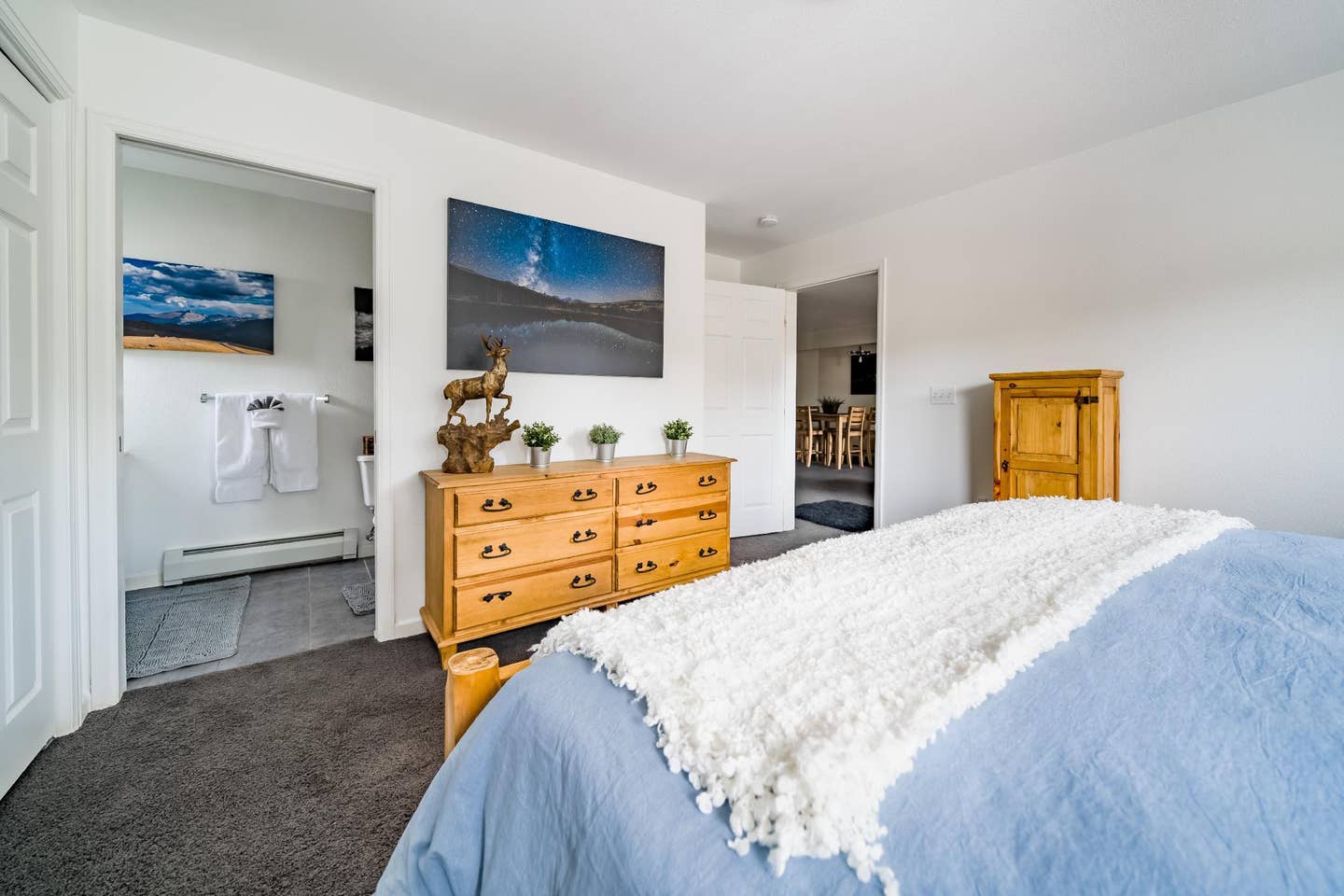 There’s a lot to love about this unit — recent updates include luxurious memory foam mattress toppers and a huge smart TV loaded with Netflix, Sling and Amazon Prime. The best part its utterly perfect location. If you stay here, you can leave your car behind and walk to pretty much everywhere in downtown Estes Park along the banks of the scenic Big Thompson River. This wonderful rental is not smack dab in the middle of downtown; instead, it’s a half block away from the edge, and three blocks away from the center. That means you get all the benefit of being downtown without the noise and congestion.