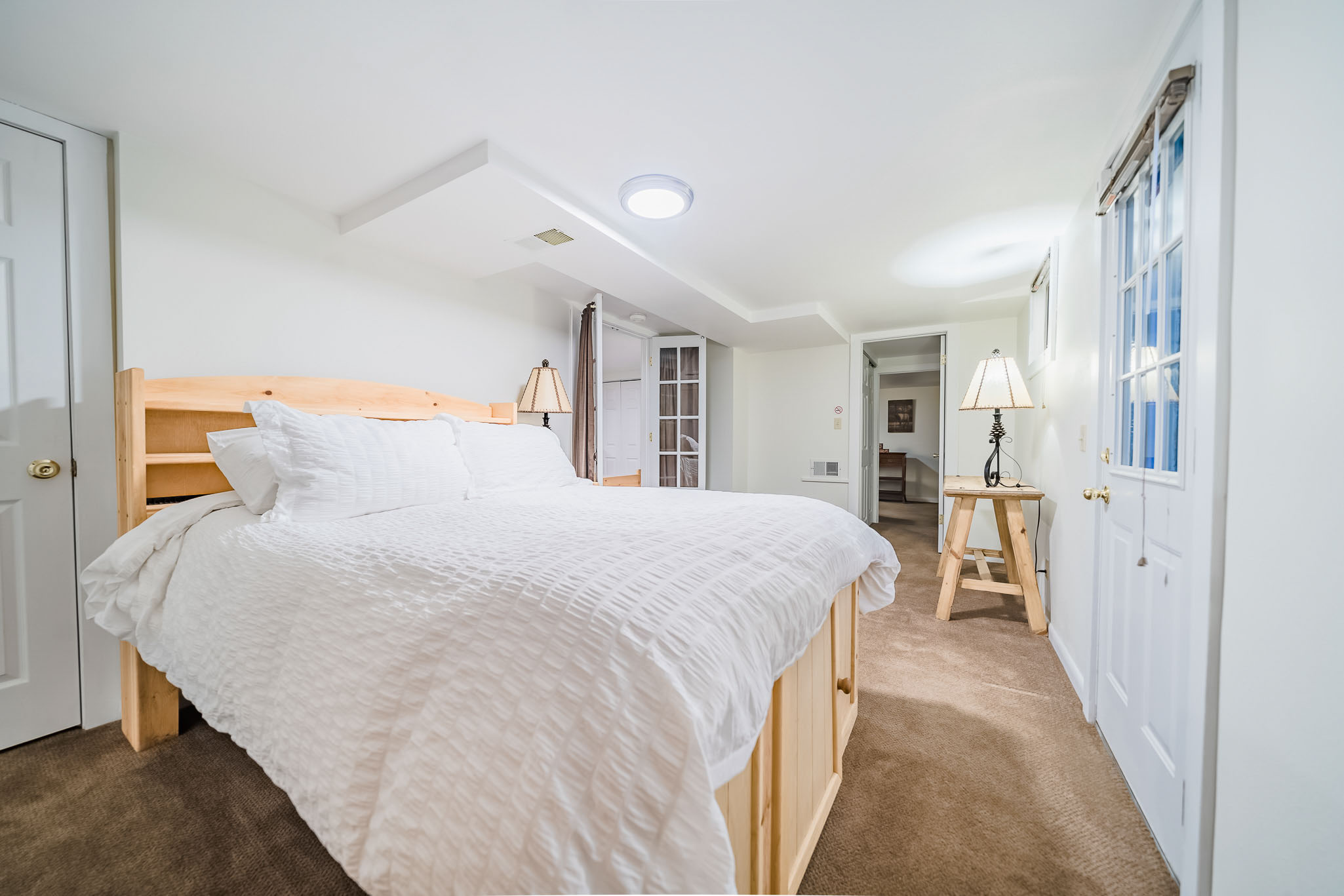 Twin Owls Cottage is a two story gem just blocks from the town’s best restaurants and shops. The main floor features a large, open dining and living area, complete with comfortable sofas and chairs, and lots of natural light. A cozy fireplace is great for the winter months. The kitchen, plus a bathroom a and bedroom are on that main floor. The lower level features another bathroom, bedroom and a media room.