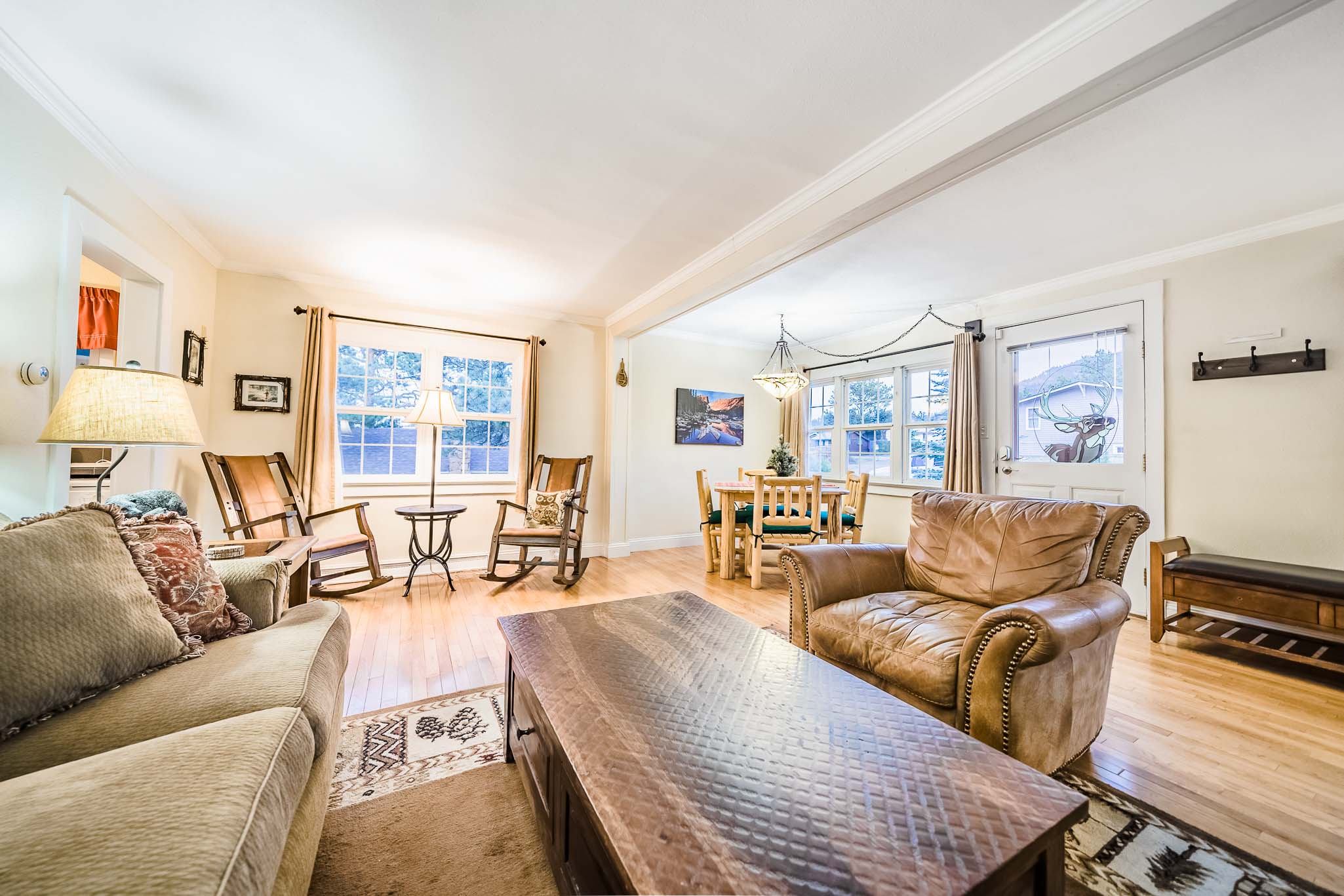 The best part of the home is its perfect location. A picturesque drive up the canyon, along the banks of Fall River, takes you to the entry to Rocky Mountain National Park in about five minutes. Meanwhile, it’s just a short, leisurely stroll to town for drinks, meals and shopping.
